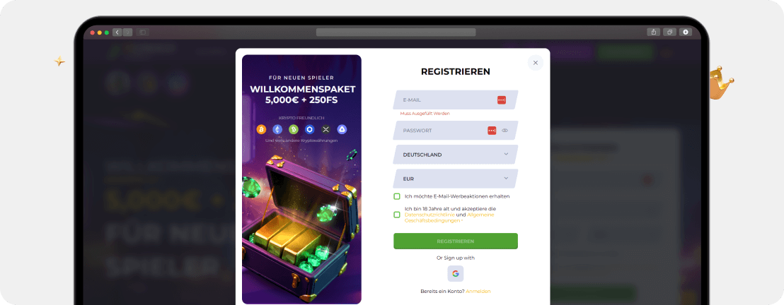 Die Registrierung bei 11Croco lässt sich als besonders schnell und unkompliziert beschreiben. Ein einziger Schritt genügt und schon seid ihr angemeldet. Direkt im Anschluss erhaltet ihr eine Benachrichtigung mit der Aufforderung, eure E-Mail-Adresse zur Verifizierung zu bestätigen. Meine vollständige 11Croco Casino Erfahrung zur Registrierung: