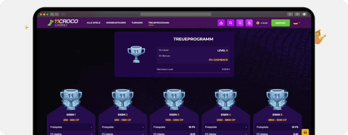 In meinem Casino Test zeigt sich, dass ihr bei 11Croco wirklich geschätzt werdet. Und das spiegelt sich deutlich im durchdachten Treueprogramm wider.
