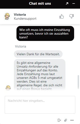 | Live Chat | Chat-Button (unten rechts) | Unter 60 Sekunden | 24/7 | 5/5 |