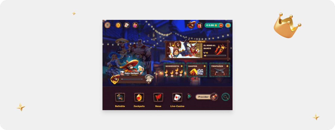 Optisch konnte das 5Gringos Online Casino auf ganzer Linie überzeugen. Es handelt sich nicht nur um ein witziges Konzept mit einem innovativen Gamification-Ansatz durch Missionen, Schießstand und Co., sondern auch um eine einwandfreie Website mit hoher Kompatibilität.