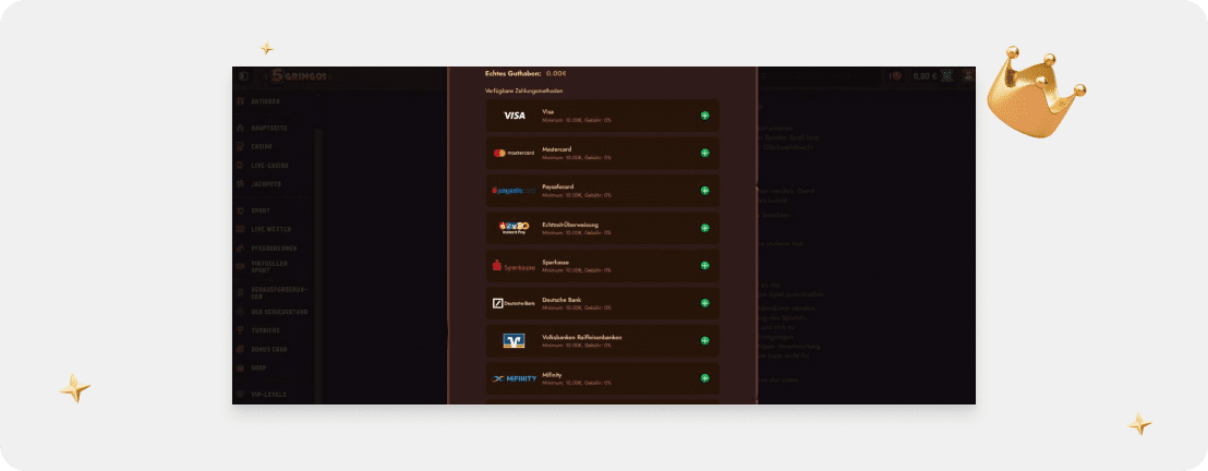 Während viele deutsche Spielhallen inzwischen eine sehr schmale Auswahl an Zahlungsmethoden in petto haben, ist das Portfolio im 5Gringos Online Casino deutlich größer.