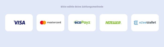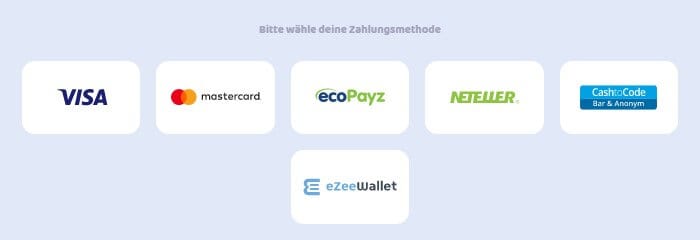 Werft ihr einen Blick auf den unteren Bereich der Webseite des 7Signs Casinos, dann gewinnt ihr den Eindruck, dass hier zahlreiche Zahlungsmethoden angeboten würden. Dem ist allerdings nicht so. Tatsächlich stehen euch nur sechs Zahlungsmethoden, NETELLER, Visa, Mastercard, Payz, eZeeWallet und CashtoCode, zur Verfügung.