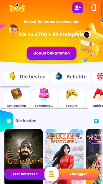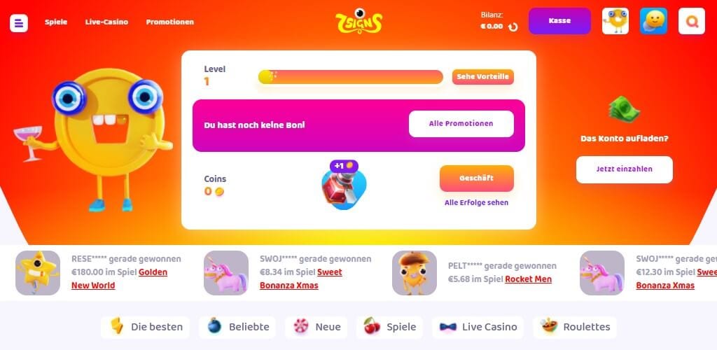 Wenn ihr euch schon einmal das ebenfalls erst 2020 auf den Markt gekommene Nomini Casino angesehen habt, werdet ihr bei 7Signs garantiert ein Déjà-vu erleben. Auch dieses Online-Casino ist sehr bunt, poppig und auffallend gestaltet.