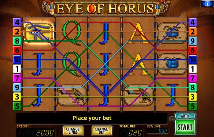 An dieser Stelle machte ich mich aber direkt ans Spielen: Am Slot Eye of Horus reduzierte ich mein Guthaben leider mit einem Einsatz von 20 Cents nach 50 Drehungen auf nur noch 20 Euro.