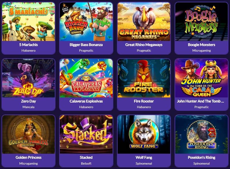 Die Slots sind völlig unsortiert und lassen sich nicht nach Thema oder Feature filtern. Außer Titel und Anbieter bekommt ihr auch keine Zusatzinformation wie Einsatzhöhen oder Return-to-Player-Werte (RTP). Beispielhaft seien euch die folgenden fünf Slots genannt:
