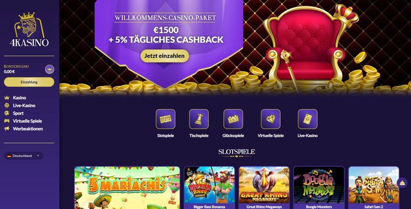 4Kasino geht noch einen Schritt weiter und erweitert euren Spaß mit virtuellen Hahnenkämpfen oder einem spannenden Cricket Roulette.