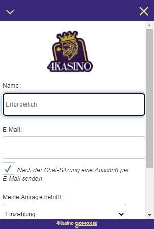Für Curaçao-Casinos ist es typisch, dass hier angesichts der laschen Auflagen nur das Nötigste getan wird. Ihr könnt im Userbereich eures 4Kasino-Accounts eine Auszeit von bis zu fünf Tagen aktivieren. Alles andere (Selbstausschluss oder Limits) läuft über den Live-Chat oder per E-Mail.