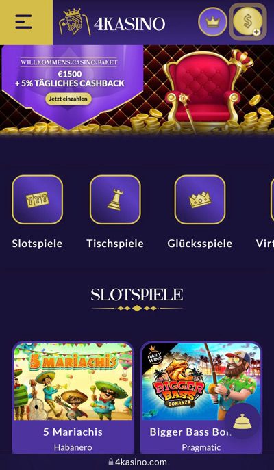 Wir haben 4Kasino am Smartphone geöffnet und waren verblüfft, dass nahezu alles identisch aussah und ablief. Ihr findet euch sofort zurecht und könnt die Website im mobilen Browser praktisch identisch vorfinden.