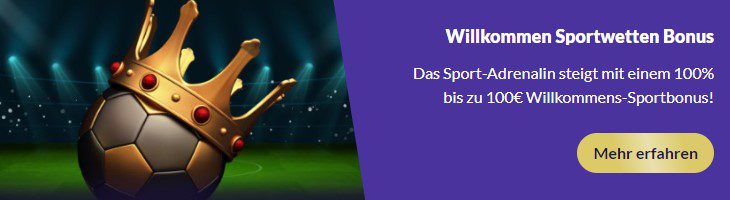 Auch in diesem Fall zahlt ihr mindestens 25 Euro ein und erhaltet dafür Bonusgeld, das ihr gemeinsam mit der Einlage 20-mal umsetzen müsst. Für Sportwetten ist das eine horrende Summe. 10 Tage gibt es Zeit für das Rollover, die Mindestquote liegt bei 1,80.