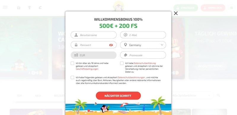 Lediglich zum Spaß zu zocken, klappt auch ohne eigenes User-Konto. Wollt ihr jedoch um Echtgeld spielen, benötigt ihr einen Account. Daher starten wir unseren BoaBoa Casino Test mit der Registrierung, die nur rund zwei Minuten eurer Zeit in Anspruch nimmt und wie folgt abläuft: