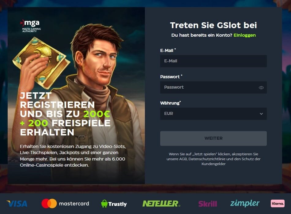 Als Online Casino Einzahlungsmethoden wurden uns während unserer Gslot Casino Erfahrungen Trustly, Payz, Sofortüberweisung, Neosurf, eps, giropay, Skrill, NETELLER, Rapid Transfer und paysafecard geboten. Das ist ein sehr gutes Zahlungsportfolio – und auch die weiteren Bedingungen zeigten sich durchaus vorteilhaft.