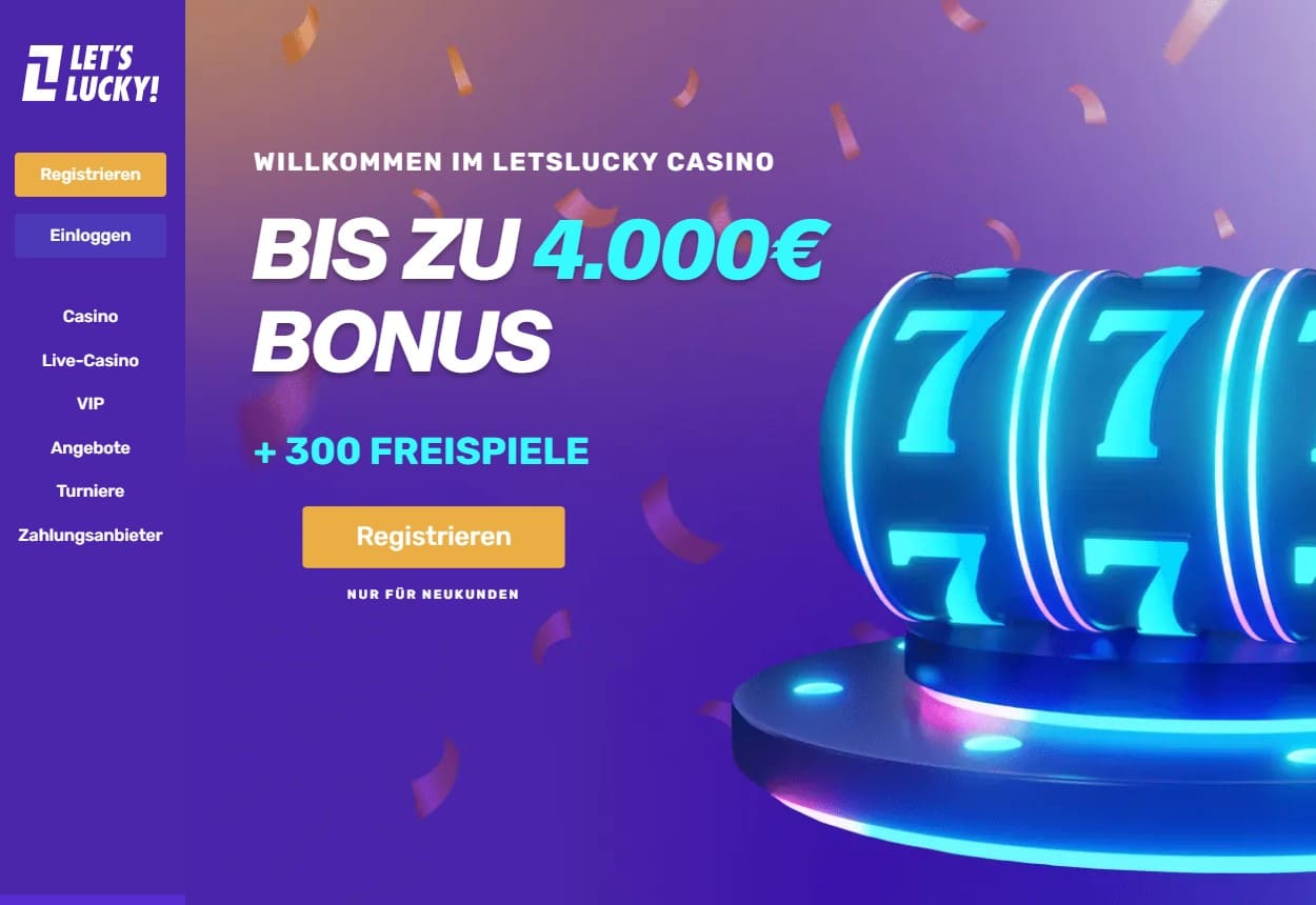 Mit dem LetsLucky Casino Bonus für Neukunden bekommt ihr die Chance, bis zu 4.000 Euro extra zu kassieren + 300 Freispiele. Das funktioniert über mehrere Einzahlungen – genauer vier.