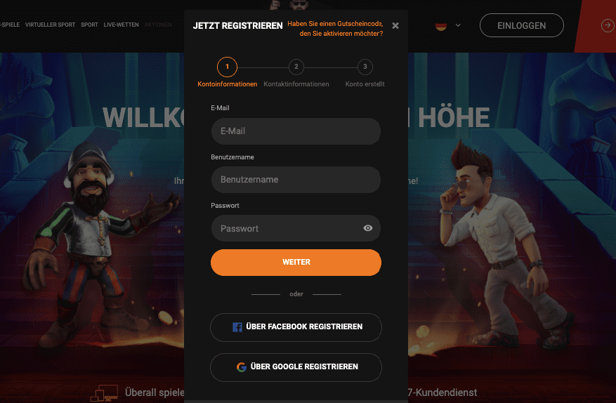 Ihr zahlt jeweils mindestens 20 Euro ein und nutzt hierbei den angegebenen Bonuscode. Beachtet die unterschiedliche Anrechnung eurer Echtgeld-Einzahlung. Für den maximalen Bonus von 1.000 Euro müsst ihr der Reihe nach mindestens 100, 333,33, 800 und 225 Euro, also insgesamt 1.458,33 Euro einzahlen.