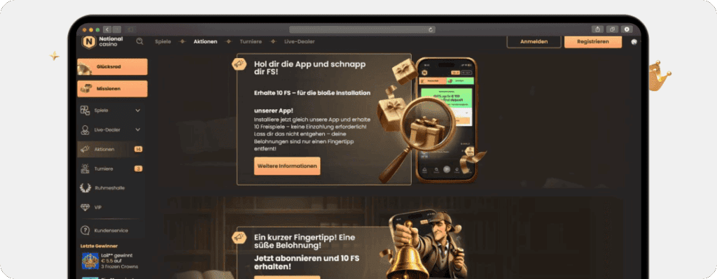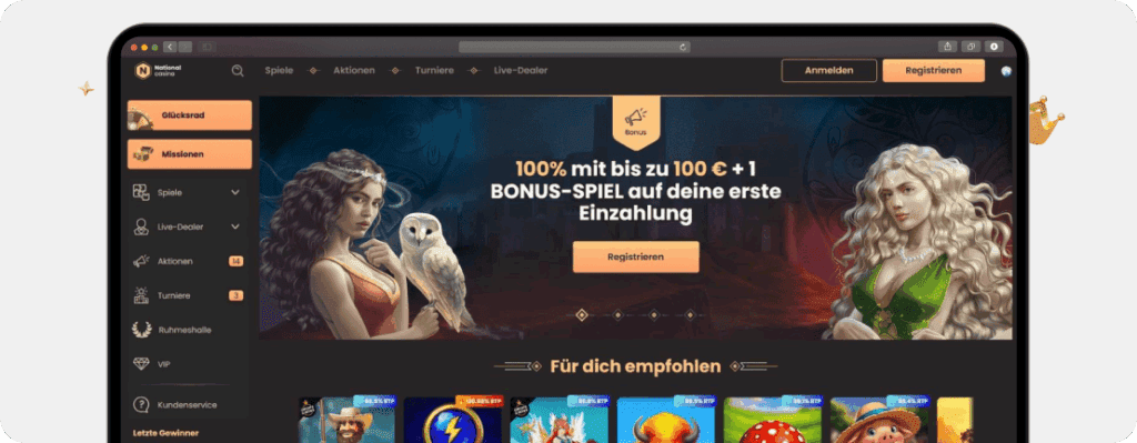 National Casino ist eine clevere Alternative, wenn ihr ein Online Casino wie Verde Casino wollt, das euch Freispiele ohne unnötige Hürden, viele bekannte Provider und mehr Orientierung im Spielangebot bietet. Statt alles nach dem Verde Casino Login an einen Registrierungsbonus ohne Einzahlung zu hängen, setzt diese Plattform auf flexiblere Gratisextras nach der Anmeldung.