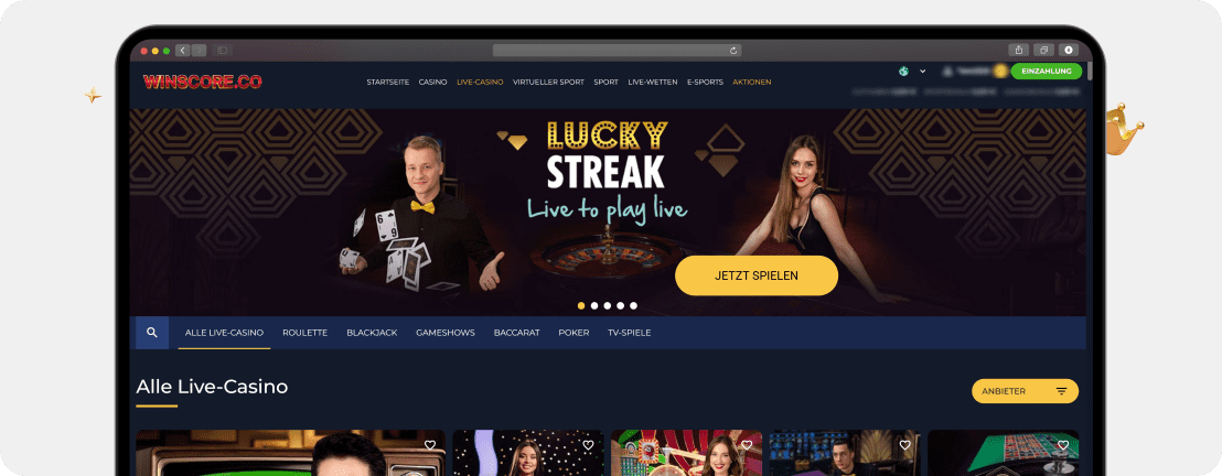 Die Limits fangen bei 10 Cent im Spielshow-Bereich an und gehen bis zu fünfstelligen Tischlimits, allerdings eher im unteren fünfstelligen Bereich. Trotzdem sollten die meisten High Roller passende Tische finden. Bei meinem Winscore Casino Test sind mir die folgenden Spiele besonders aufgefallen: